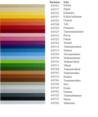 Värikartta helpottamaan valintoja. Vain nettikäyttöön.