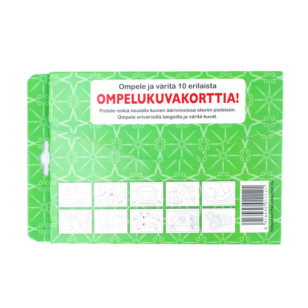 Pakkauksessa 10 erilaista ompelukuvaa. Ei sisällä neulaa eikä lankaa. Valmistettu Suomessa kotimaisista materiaaleista.