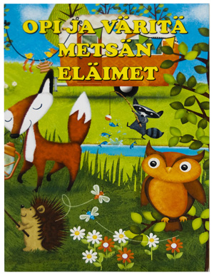 Koko A4, 32 sivua. Kirjassa on 32 erilaista kuvaa, jotka on merkitty eläimien nimillä. Eläimet on tarkoitus värittää kansilehdillä olevien mallien mukaan.