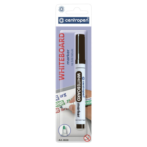 Centropen-valkotaulukynä, jonka kärki on pyöreä (2,5 mm), on suunniteltu käytettäväksi valkotauluilla ja muilla ei-huokoisilla pinnoilla.