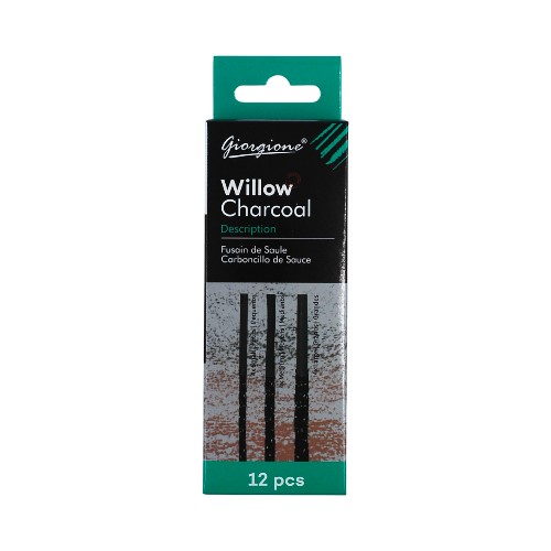 Piirustushiili 12 hiiltä pakkauksessa, 3mm, 5mm ja 7mm hiilten koot.