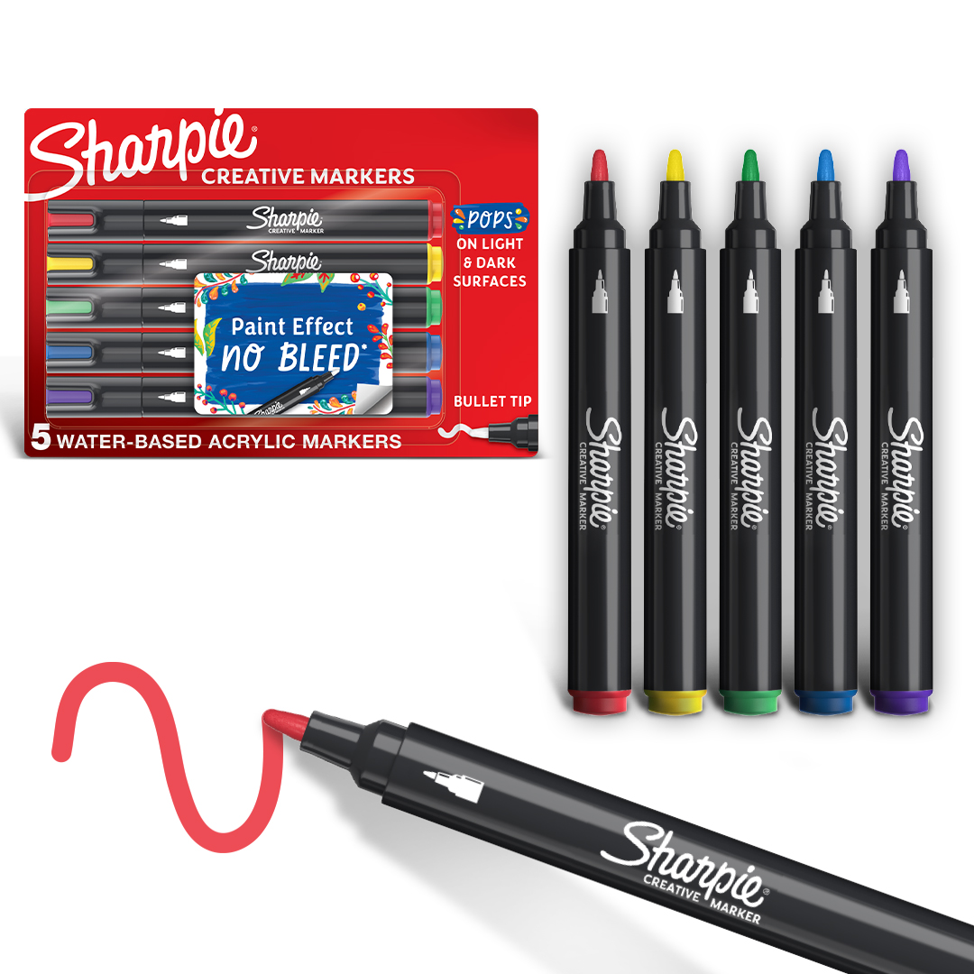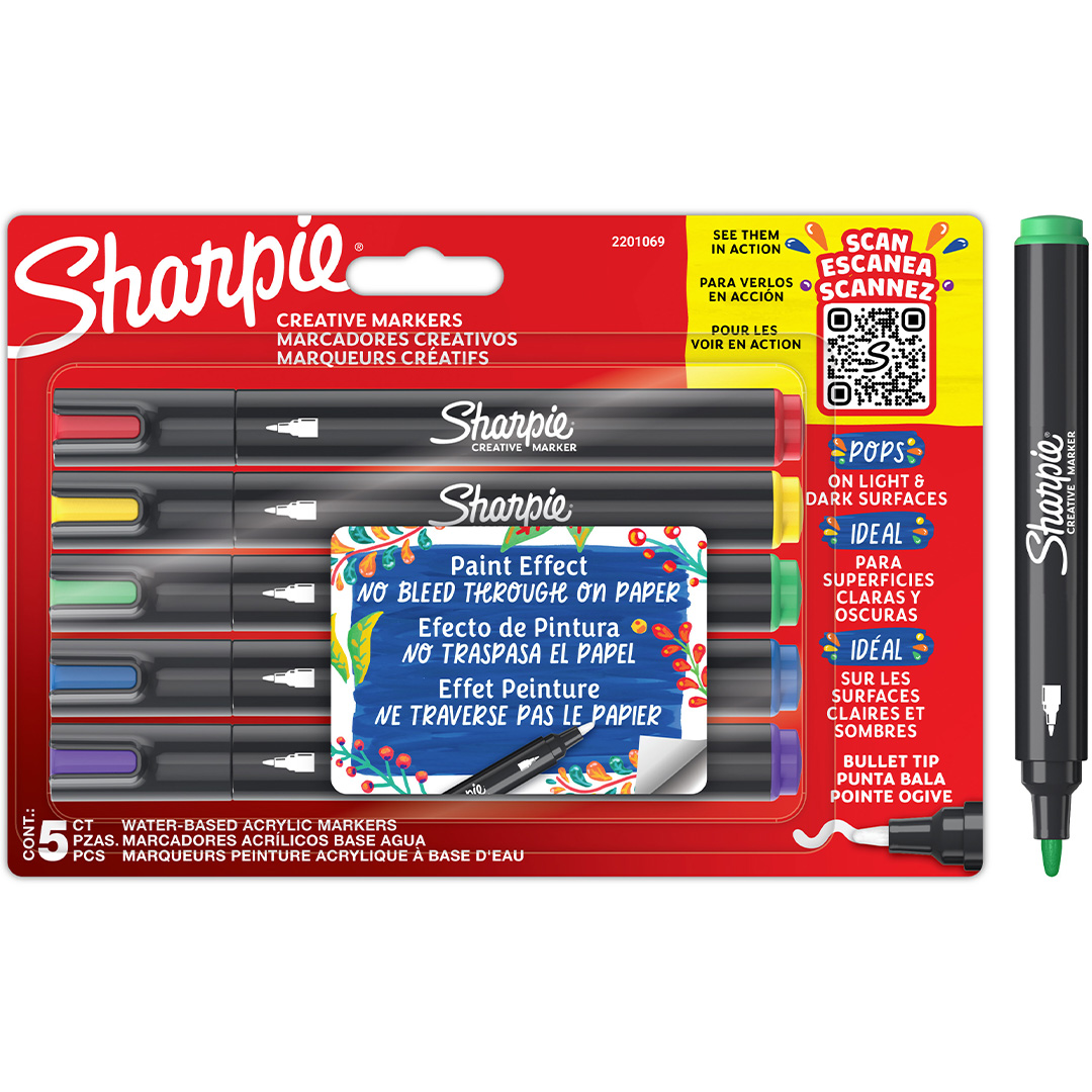 Sharpie Creative Acrylic Marker Assorted Colours Bullet tip 5-Blister, shnw6